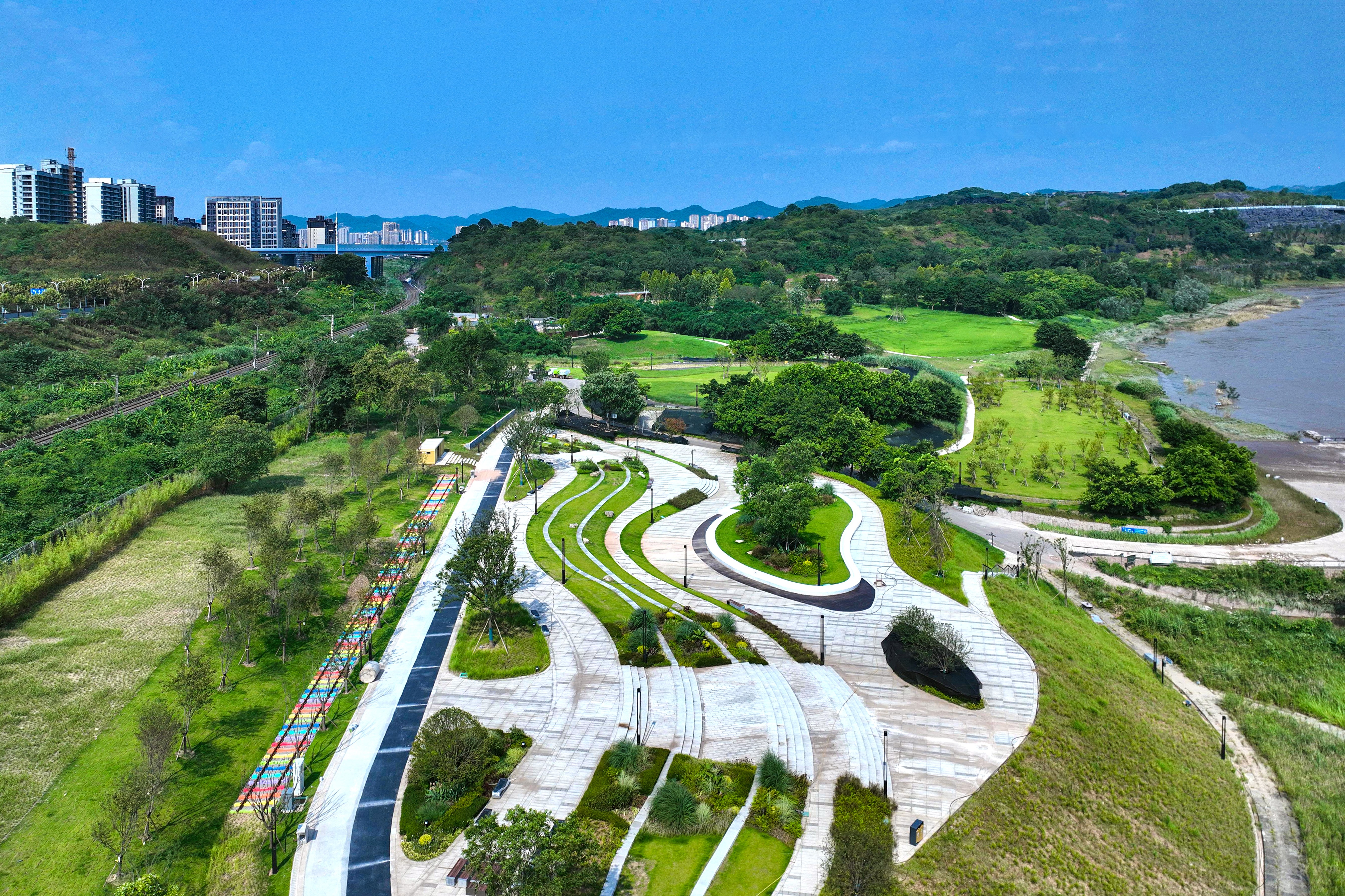 中冶建工承建的重慶“兩江四岸”治理提升長江北岸線延伸工程釣魚嘴濱江段項(xiàng)目,是重慶市重點(diǎn)工程,也是“兩江四岸”治理提升重點(diǎn)項(xiàng)目,全長約4.2公里,通過微改造,巧妙利用現(xiàn)有草海、森林、江灘等資源,彰顯原生態(tài)自然景觀,使生態(tài)美景連點(diǎn)成線,讓群眾享受更多開窗見景、推門見綠的城市空間,成為全國各地增植補(bǔ)綠、打造生態(tài)宜居城市的典范。